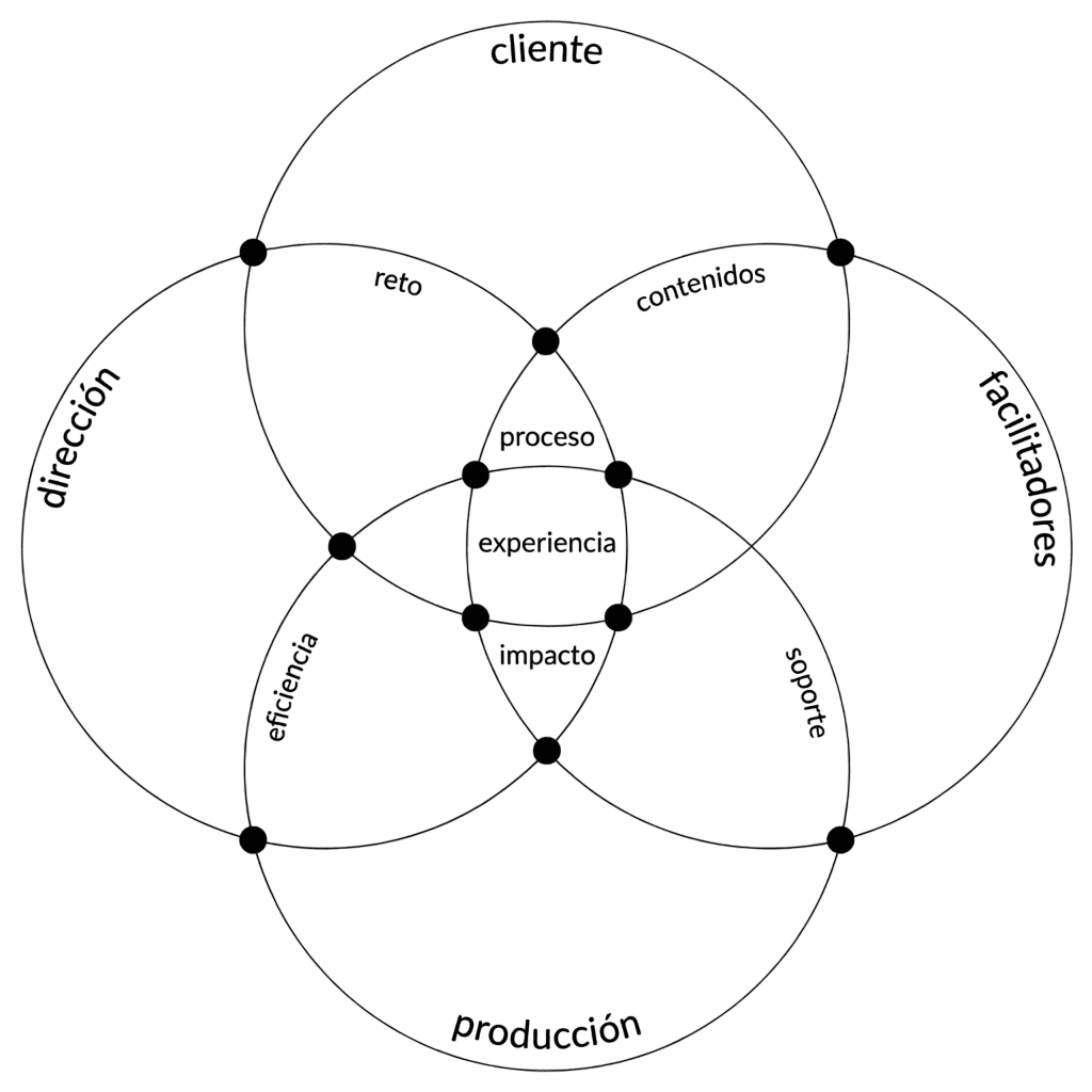 codiseñan contenidos, perspectivas, metodologías y dinámicas para abordar el reto. asumen la facilitación, la evaluación y la implementación, así como el seguimiento y la sostenibilidad del plan de trabajo.